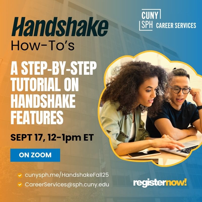 Join us for a live demo on completing your profile, connecting with other CUNY SPH students and alumni, scheduling advising appointments, and exploring all the features Handshake has to offer. Open to CUNY SPH students and alumni.