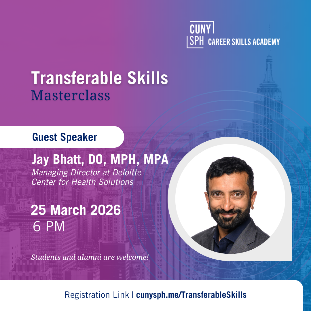 Students and alumni are welcome. Questions? Email CareerServices@sph.cuny.edu